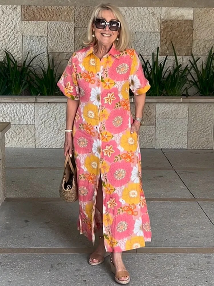 Casual print medium and long shirt skirt