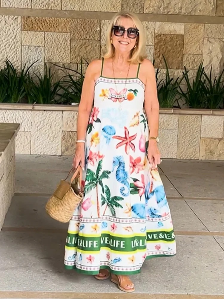 Engineered Print Square Neck Maxi Dress