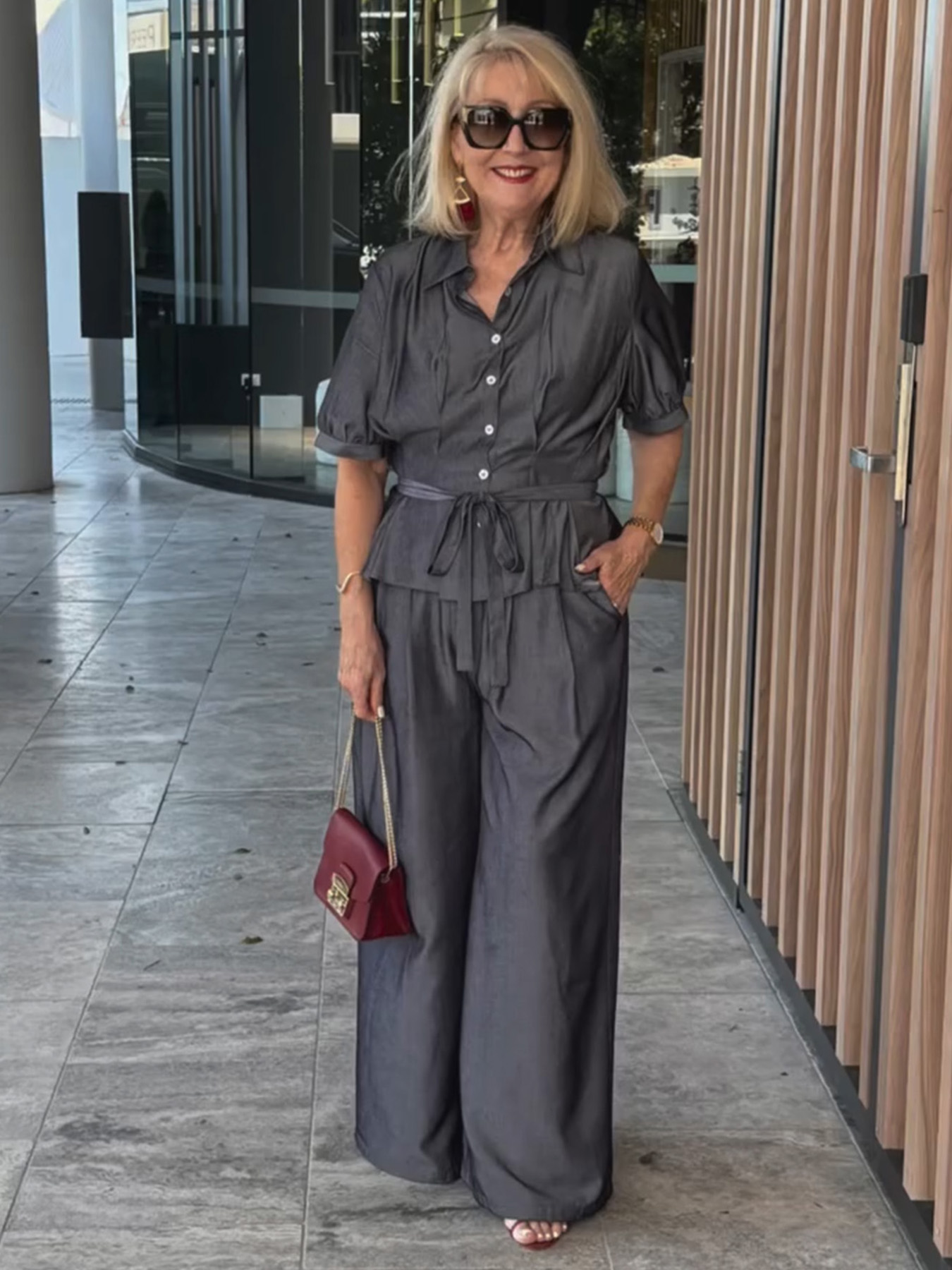 Cardigan Two-piece Set Medium Sleeve Solid Color Casual Set Stand-up Collar