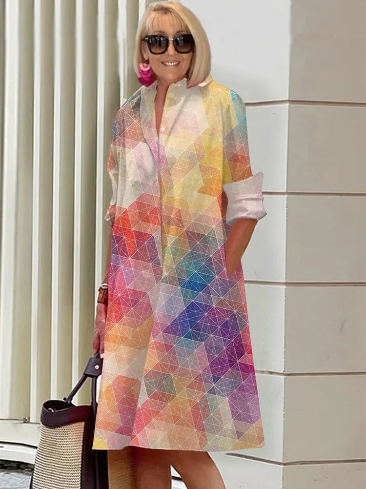 Gorgeous Colors Long Sleeve Pocket Shirt Dress