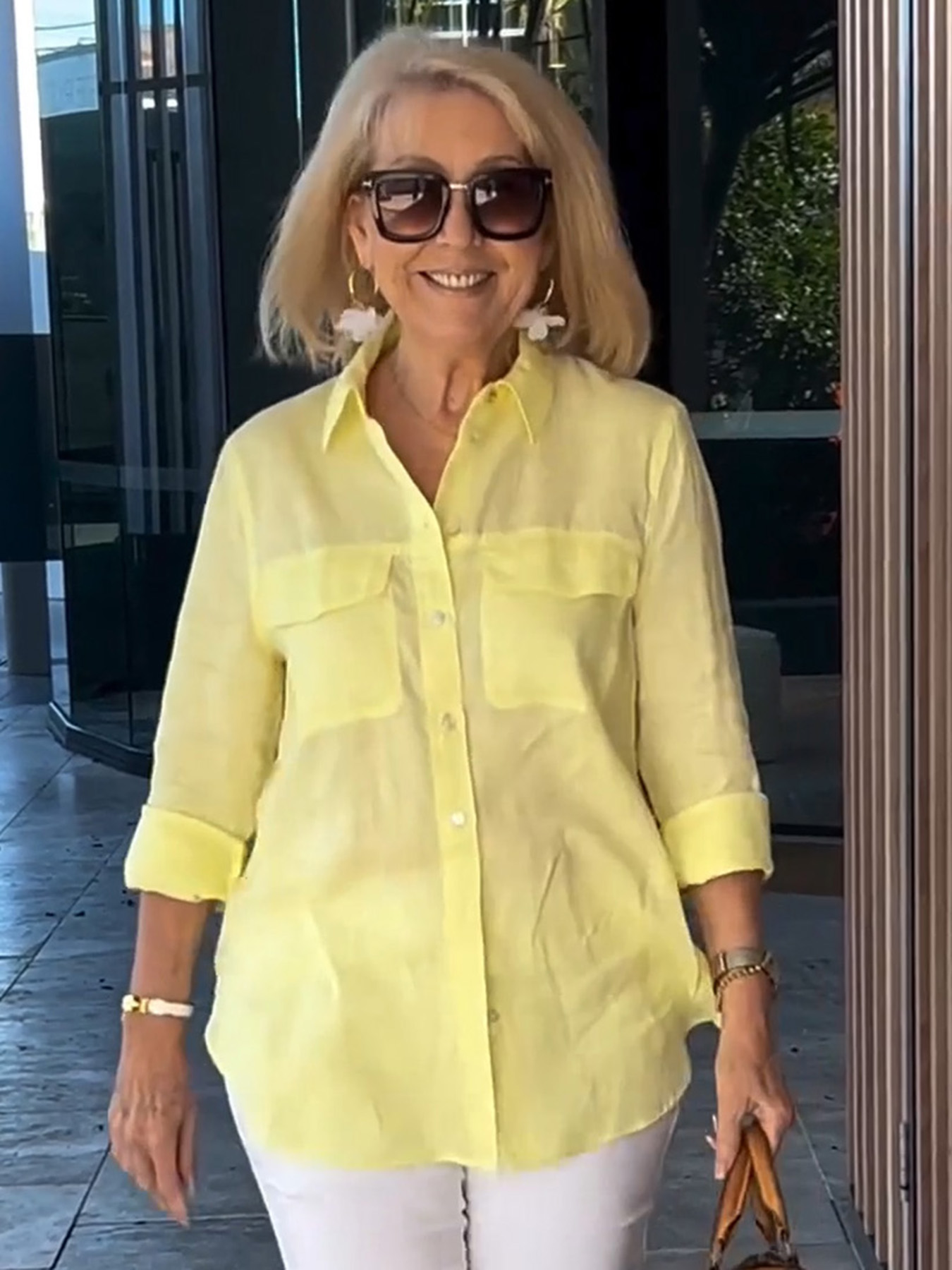 Double Pocket Cardigan Shirt Casual Top Loose Cotton Healthy Breathable