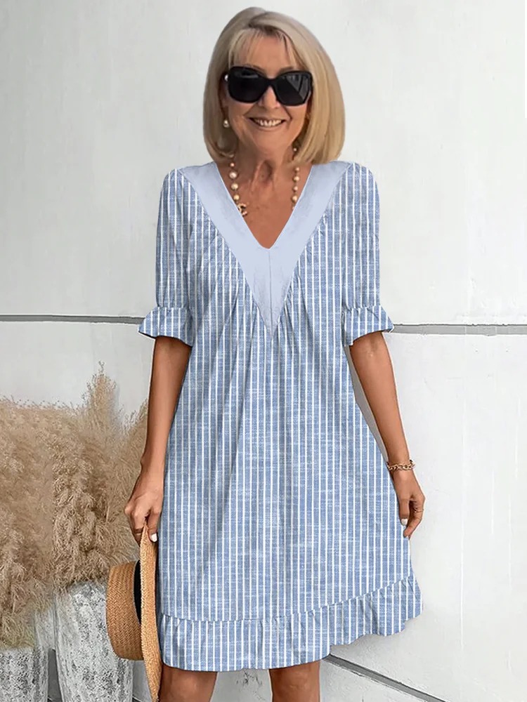 Stylish V-neck loose-sleeved dress