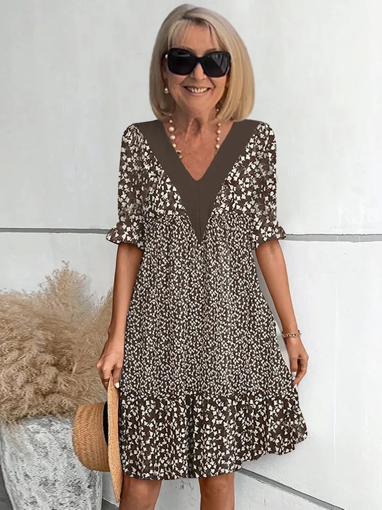 Fashion Printed V-Neck Loose Sleeve Dress