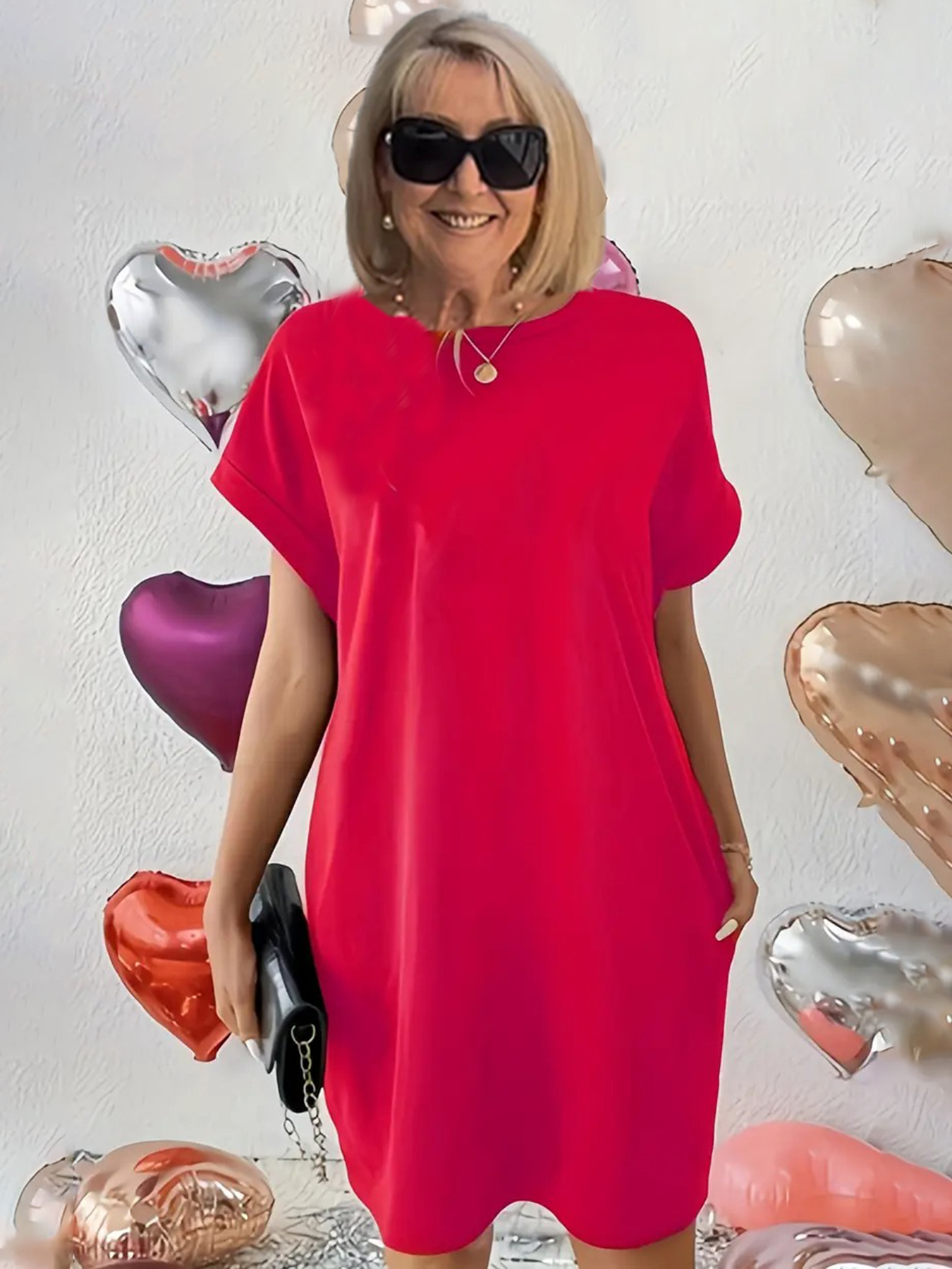 Dual Pocket Crew Neck Loose Dress, Casual Short Sleeve Dress For Spring & Summer, Women's Clothing