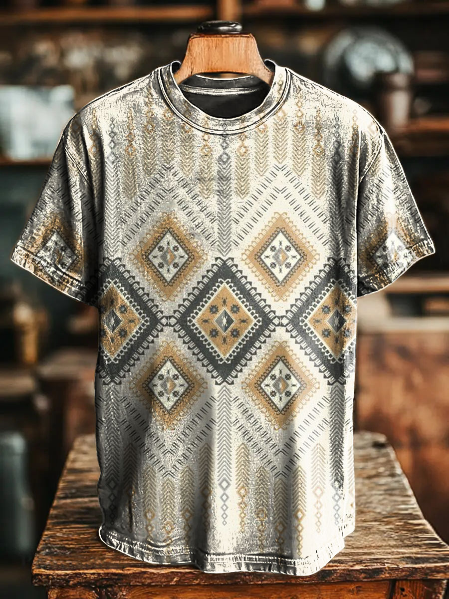Ethnic Style Stripes Geometry Rhombus Vintage Art Print Casual T-shirt For Men And Women