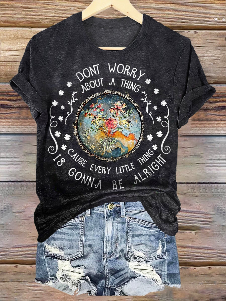 Every Little Thing Is Gonna Be Alright Hippie Print Crew Neck T-shirt
