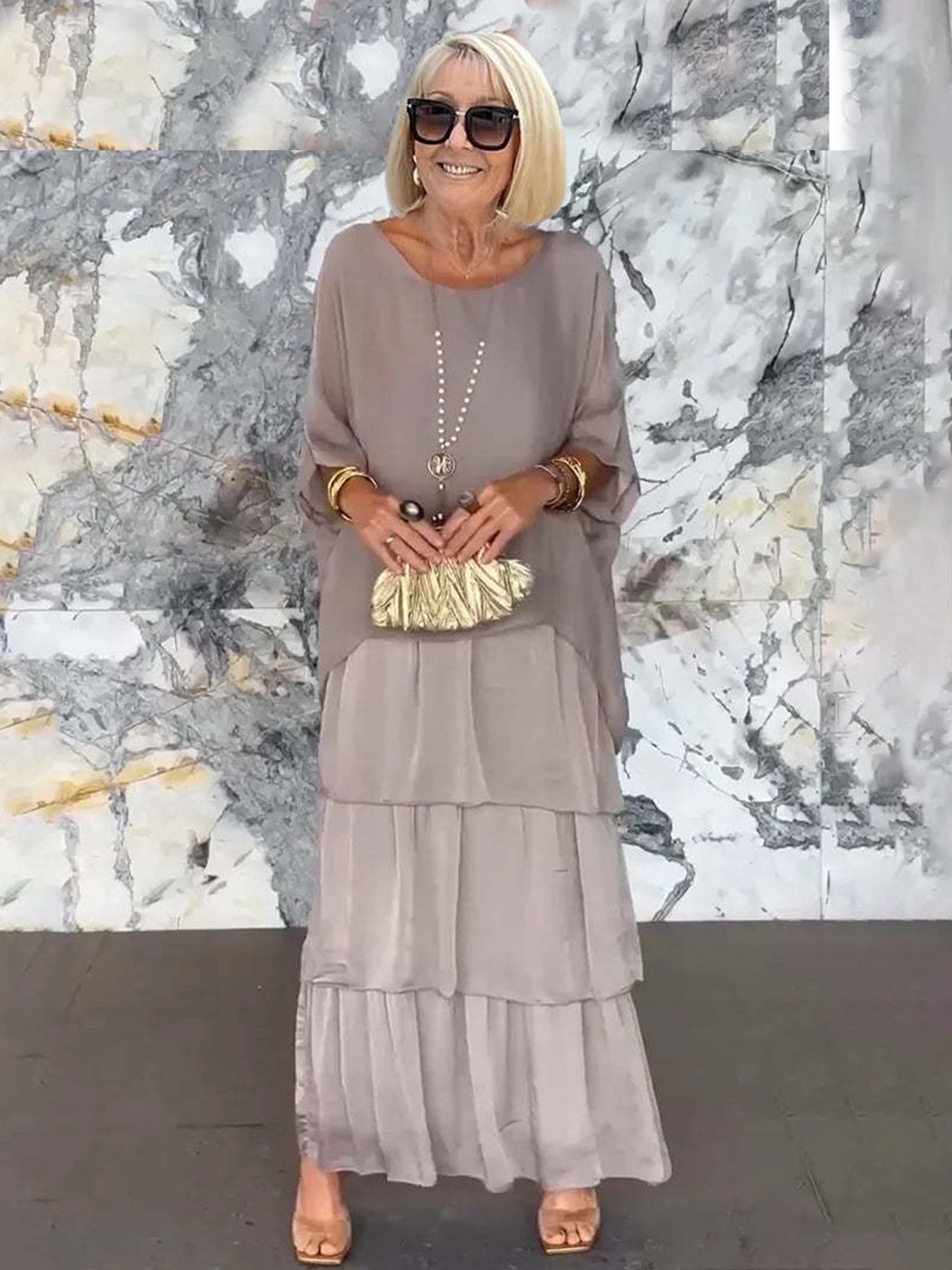 Solid Color Women's Gradient Clover Art Print Elegant Chiffon Cake Skirt