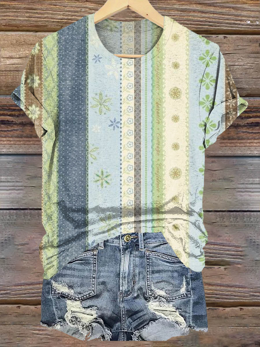 Floral Colorblock Art Print T-Shirt