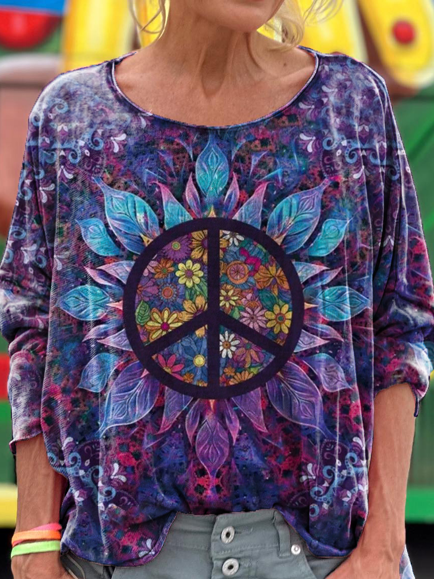 Floral Hippie Art Print Casual Long Sleeve T-Shirt