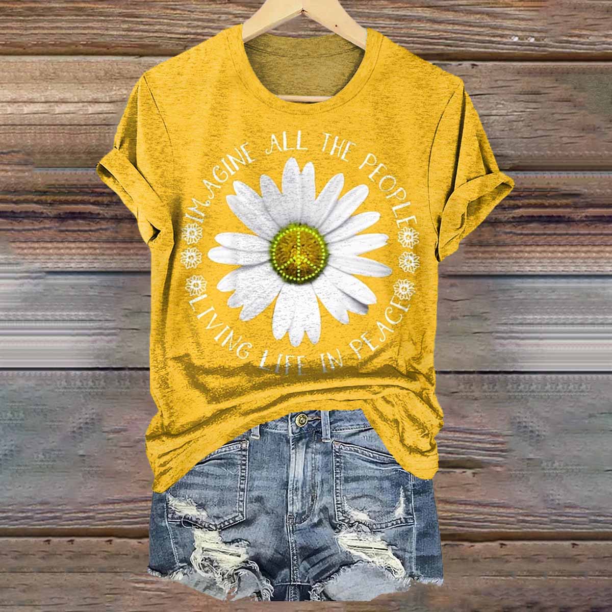 Hippie Daisy Print Crew Neck T-shirt