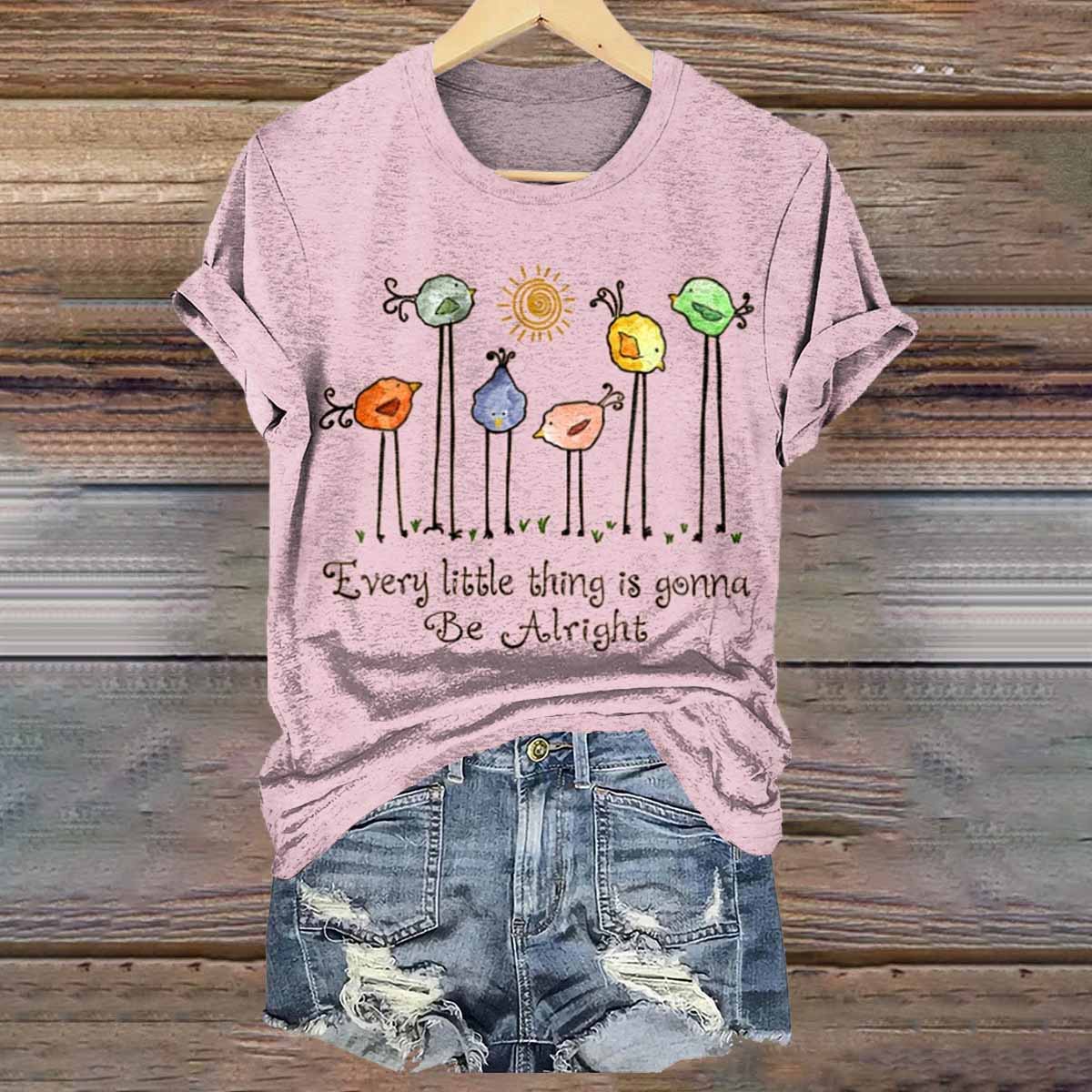 Hippie Every Little Thing Is Gonna Print Crew Neck T-shirt