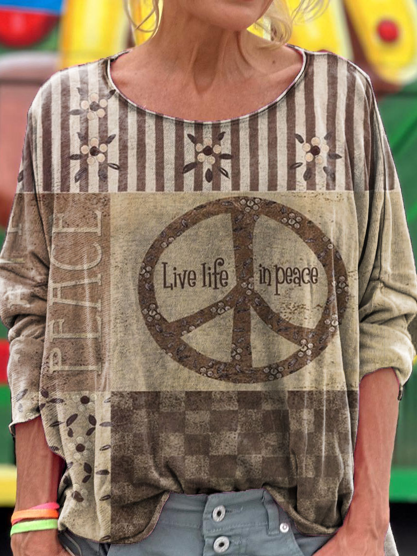 Hippie Graphic Art Print Casual Long Sleeve T-Shirt