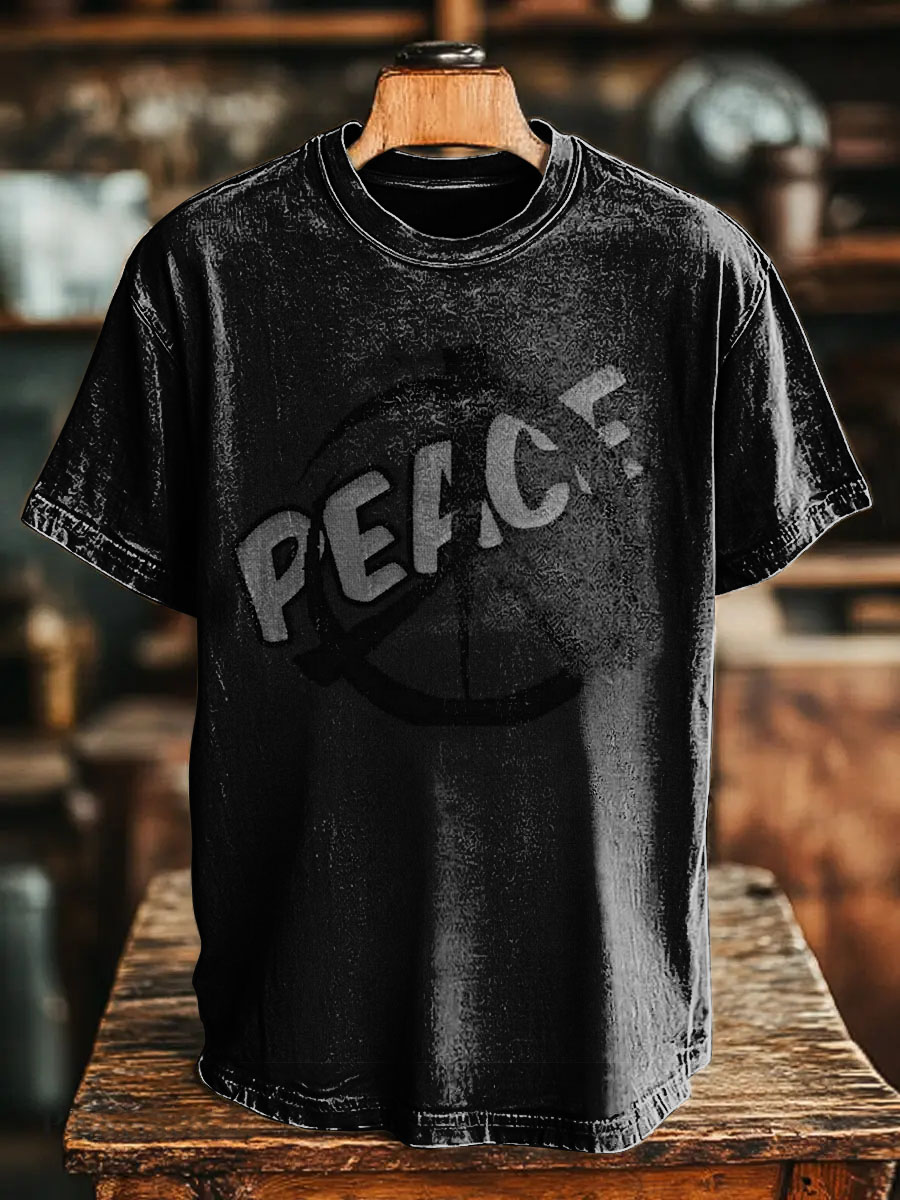Hippie Peace Black Vintage Art Print Casual T-shirt