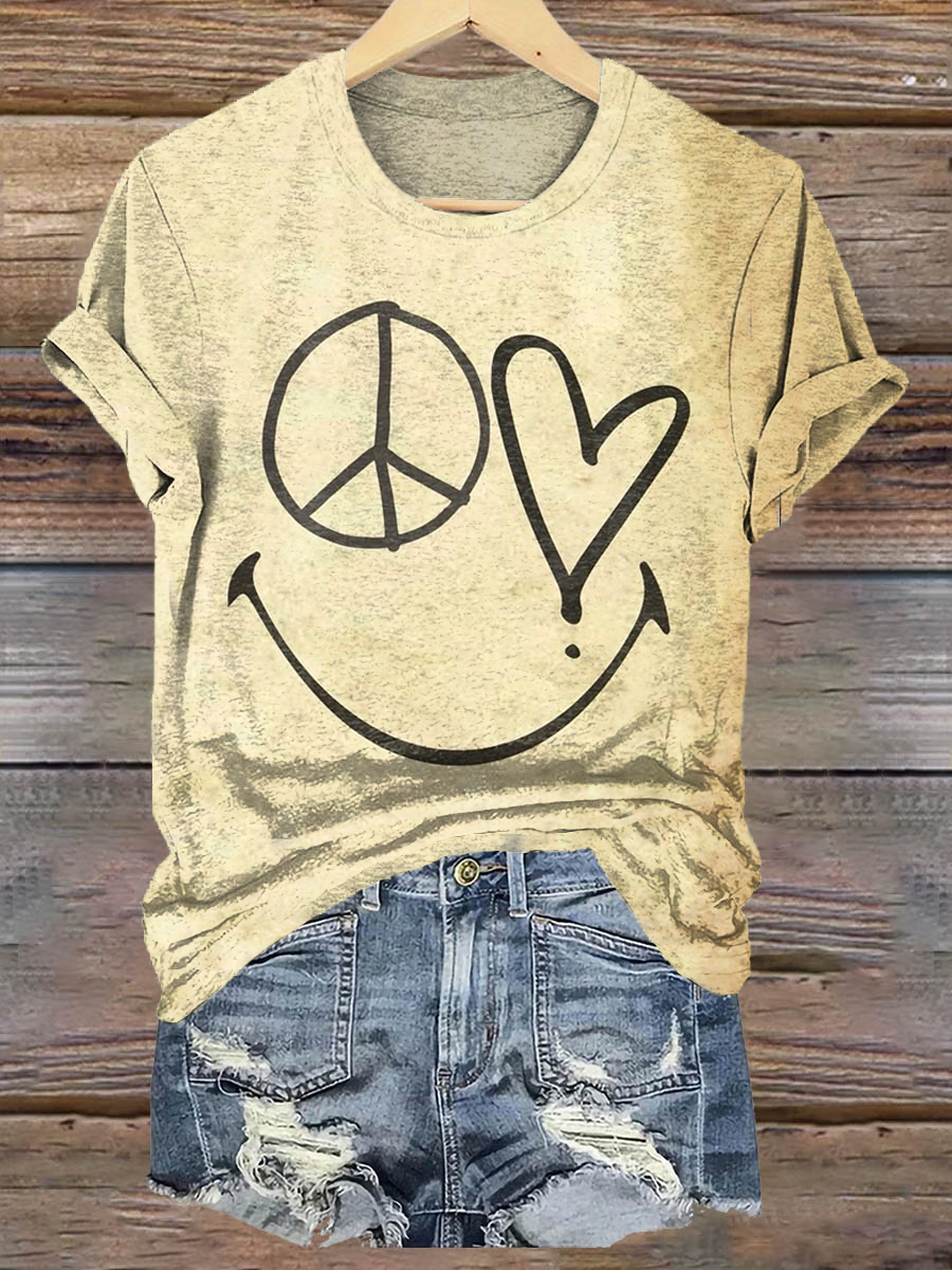 Hippie Smile Art Print Casaul Short Sleeve T-shirt