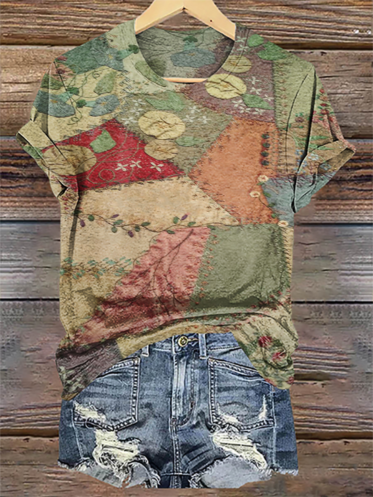 Imitation Retro Patchwork Flat Print T-shirt