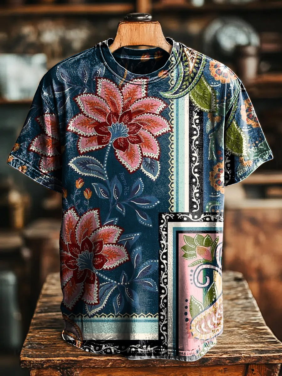 National Flowers Patchwork Vintage Art Print Casual T-shirt For Men And Women