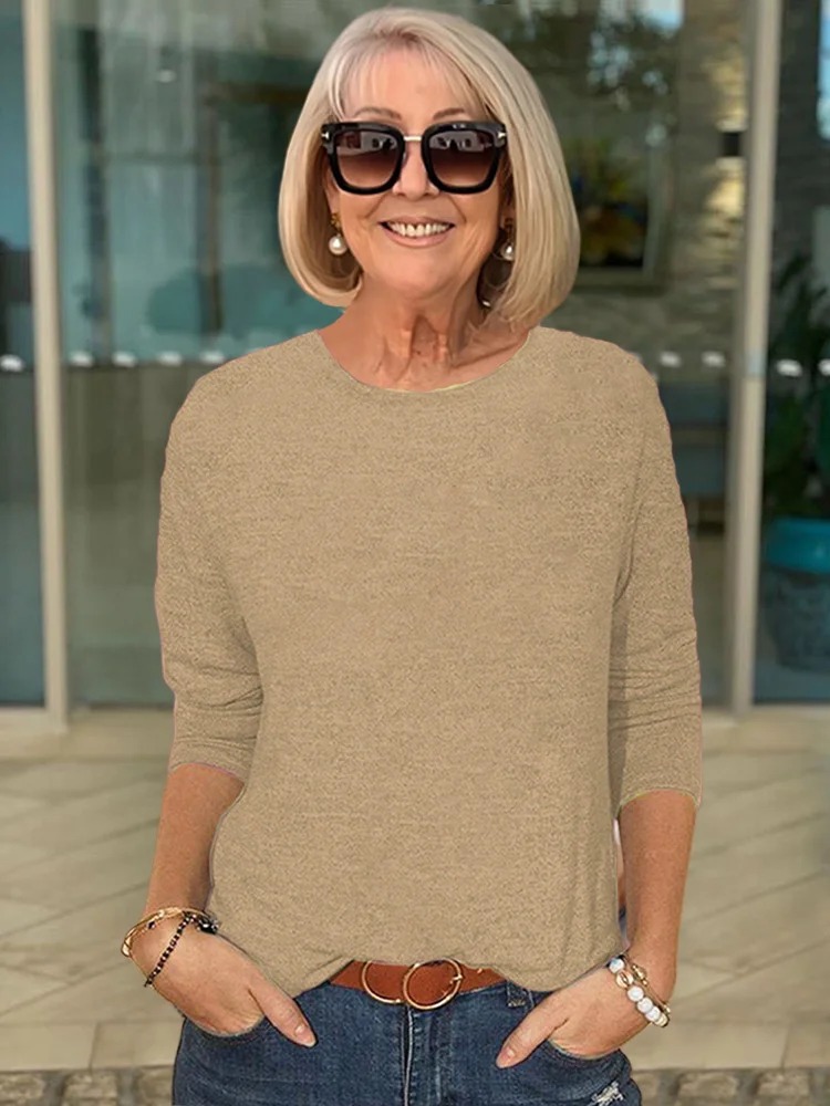 Versatile Crew Neck Long Sleeve T-Shirt Top