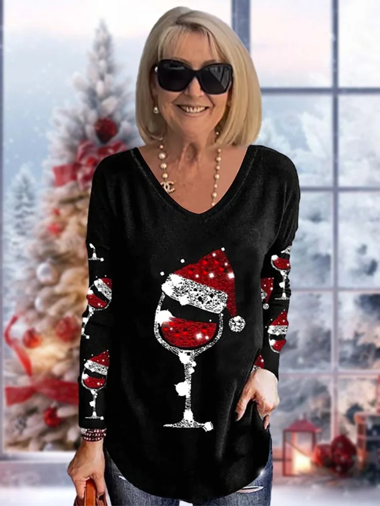 Loose 3D Christmas Element Printed V-Neck T-Shirt