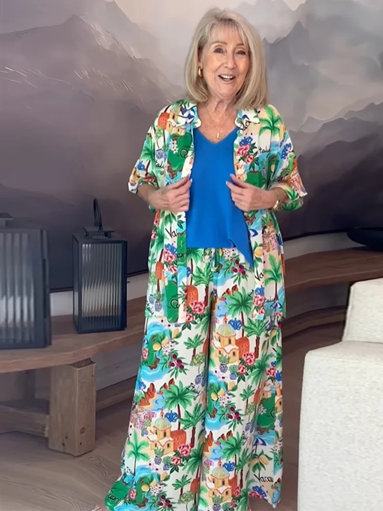 Casual Hawaiian Style Printed Shirt & Pants Two-piece Set