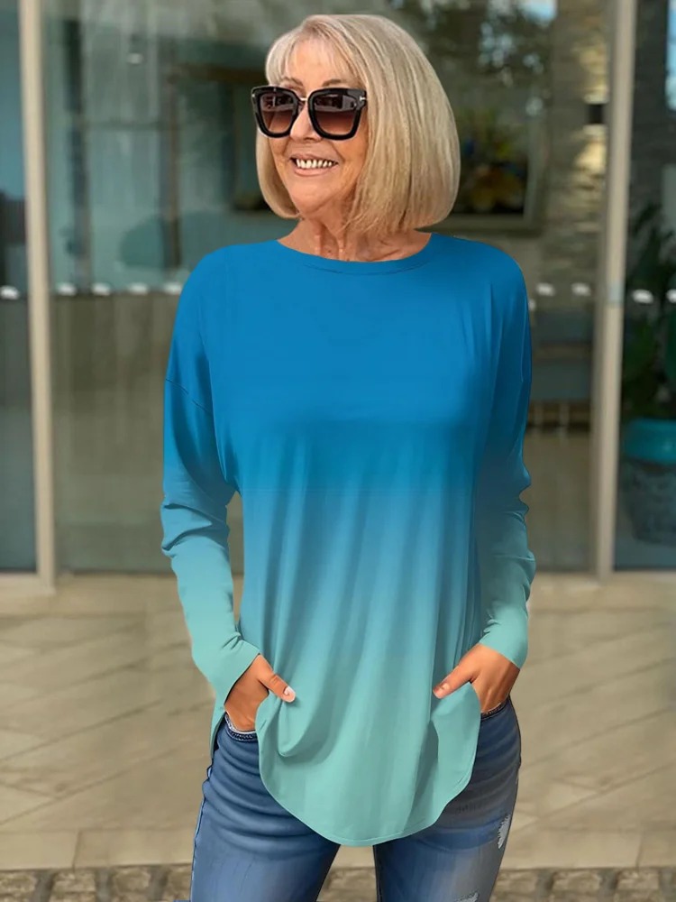 Gradual Change Color Print Long Sleeve T-shirt Top