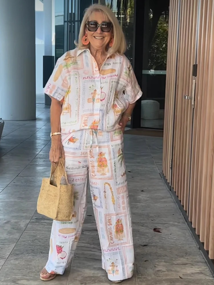 Casual Fashion Printed Shirt & Pants Two-piece Pants