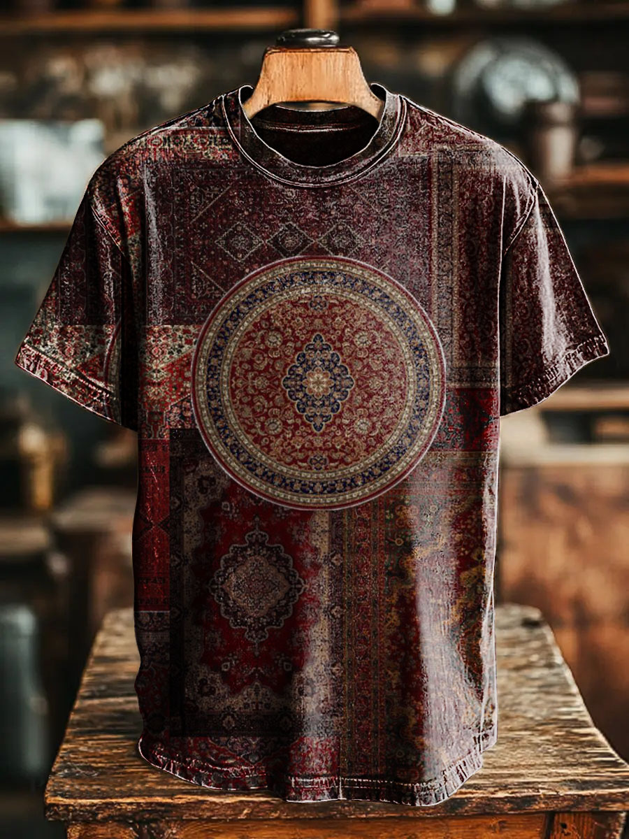 Patchwork National Flower Pattern Vintage Art Print Casual T-shirt For Men And Women