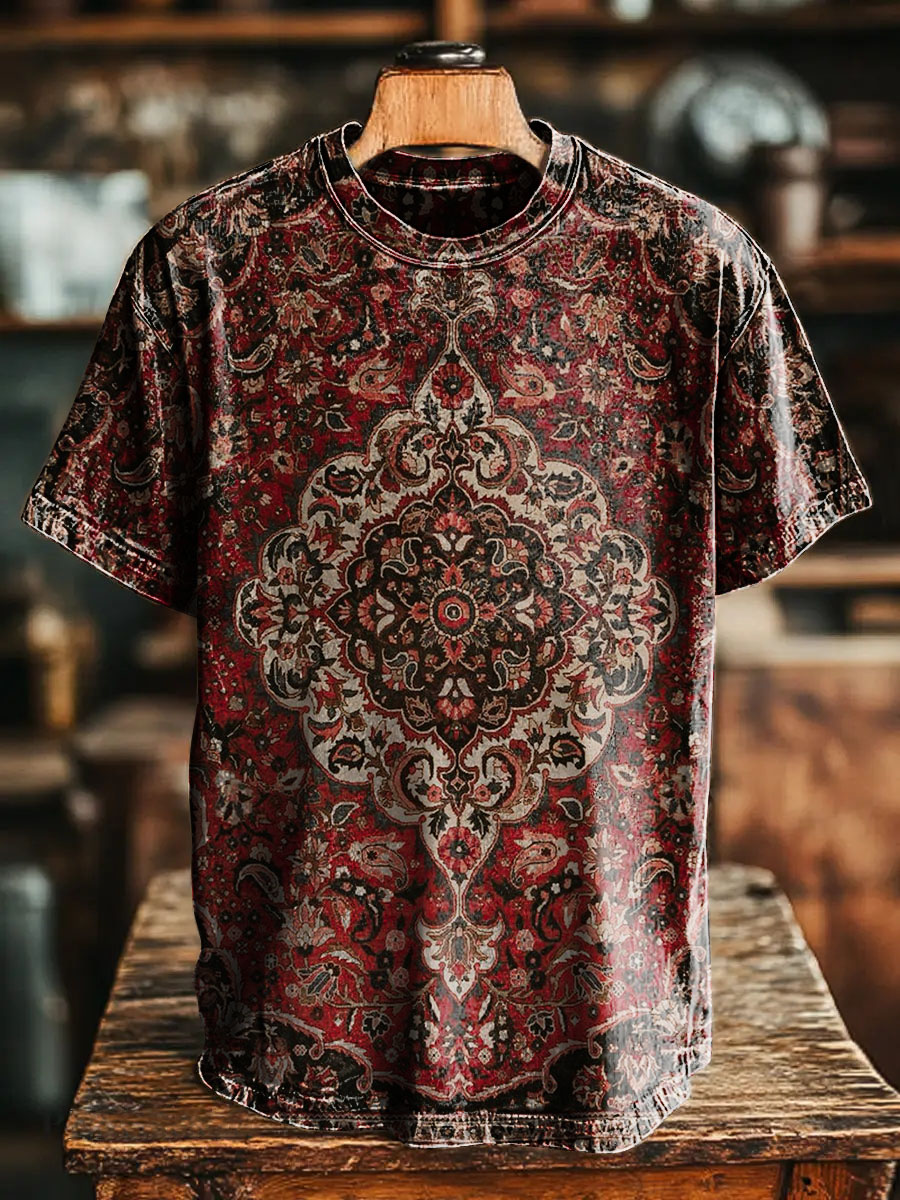 Retro Red National Floral pattern Vintage Art Print Casual T-shirt For Men And Women