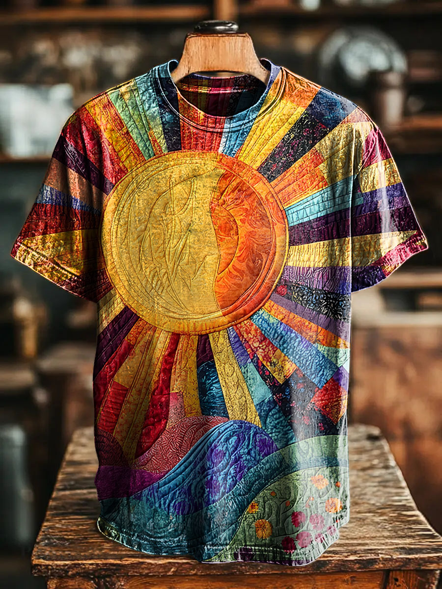 Retro Sun Patchwork Abstract Vintage Art Print Casual T-shirt For Men And Women