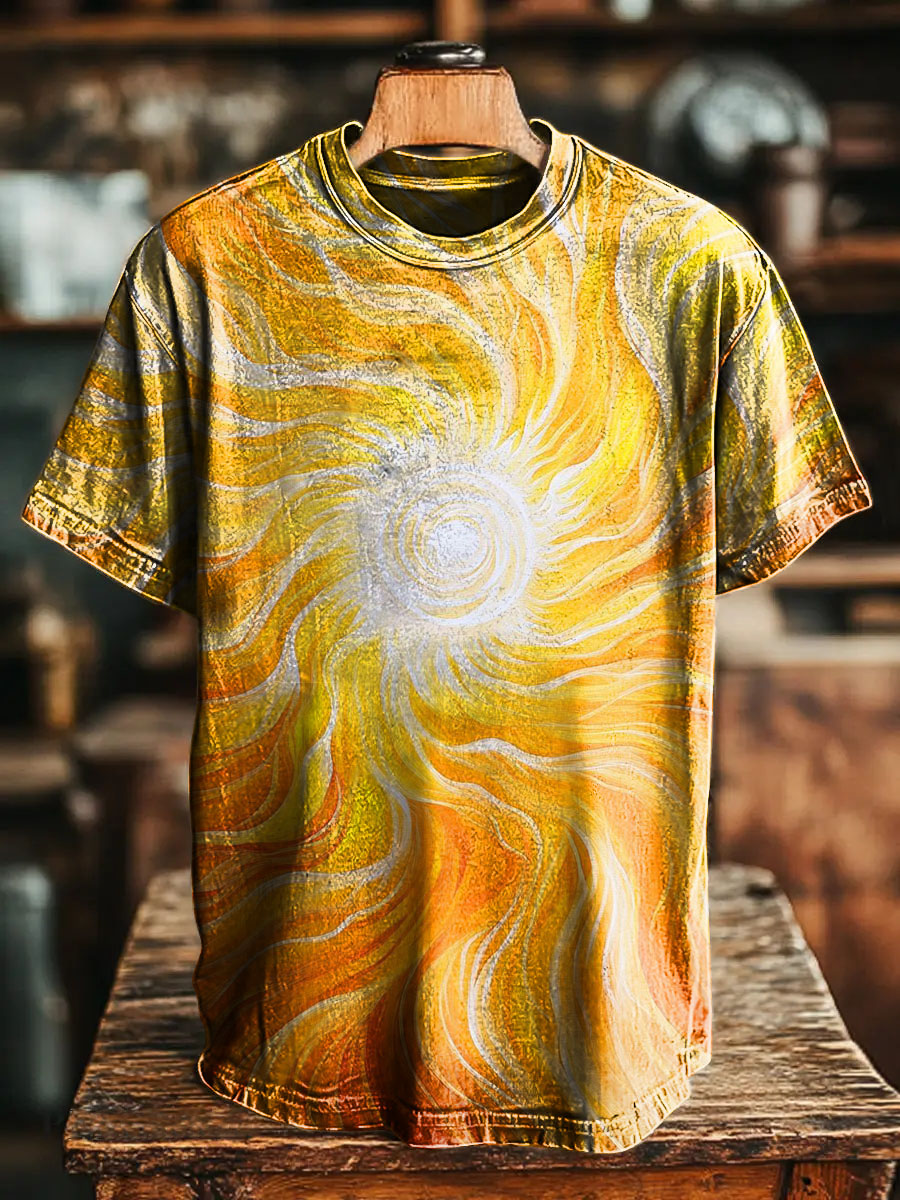 Retro Visual impact Sun Vintage Art Print Casual T-shirt For Men And Women