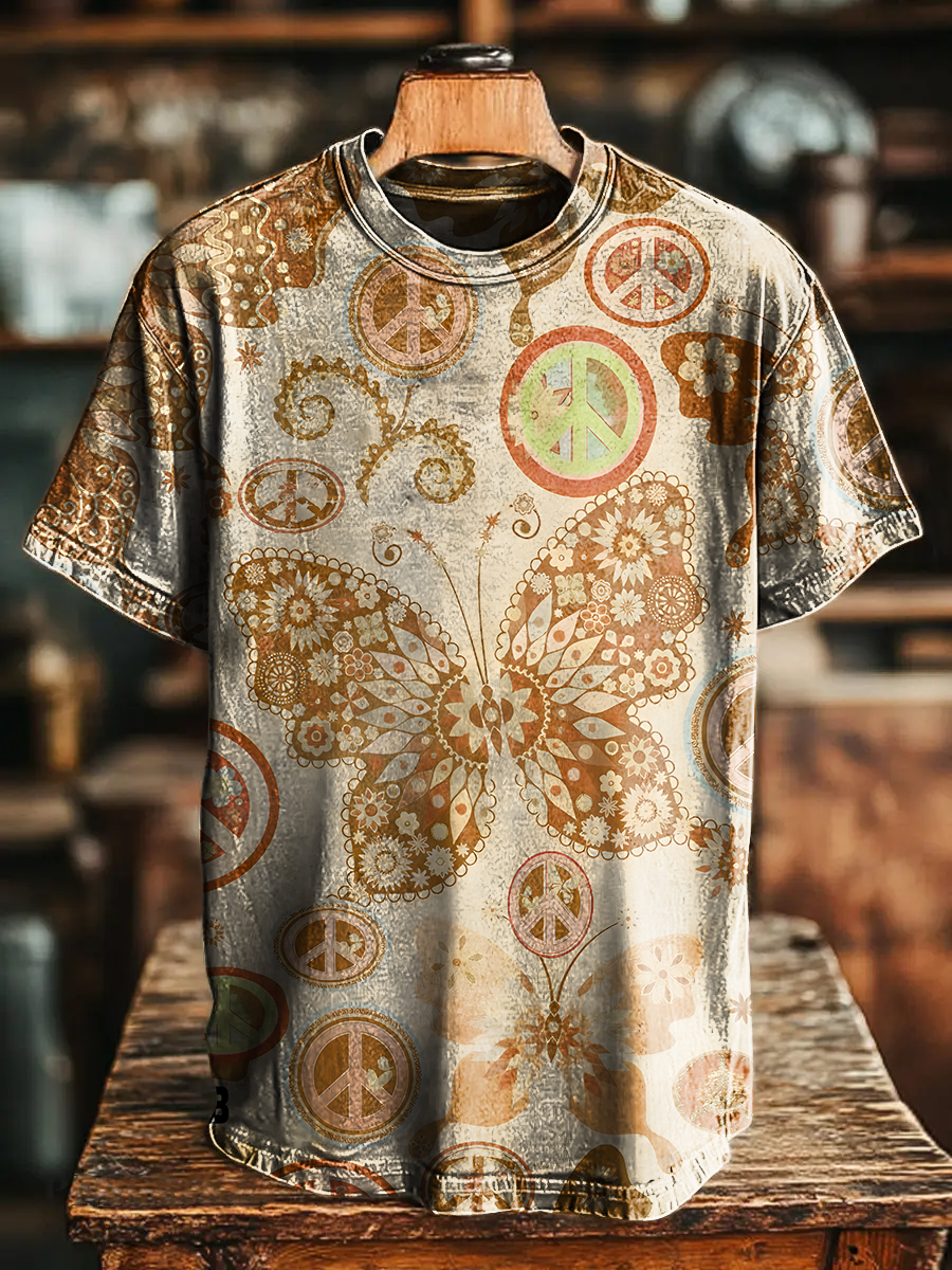 Retro Weathered look Butterfly Hippie Vintage Art Print Casual T-shirt For Men And Women