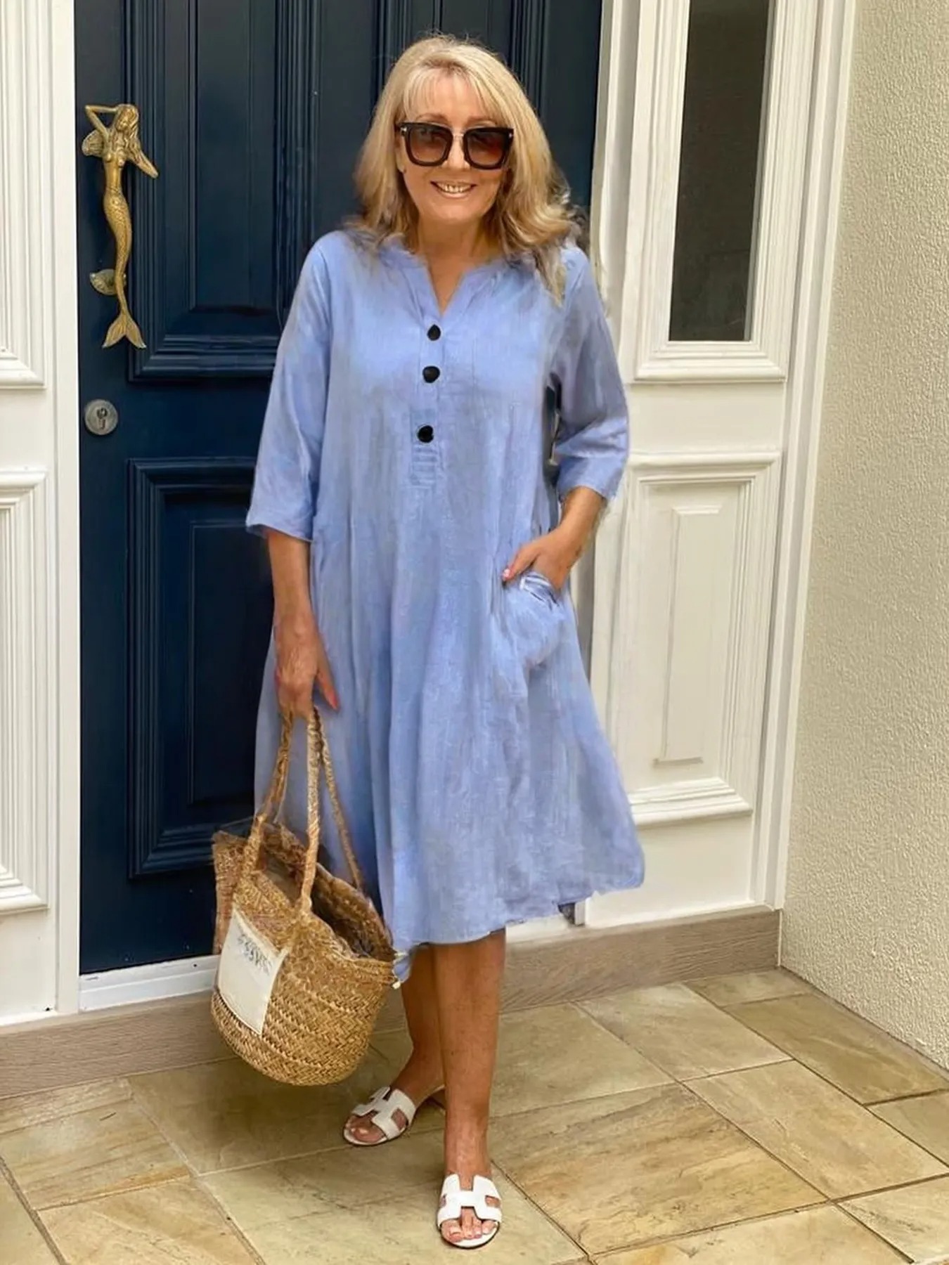Solid Color Wide Hem Pocket Cotton and Linen Cotton Half-Length Sleeve Dress