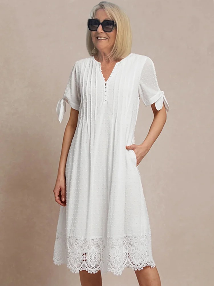 Fashion Elegant Solid Color Lace Dress