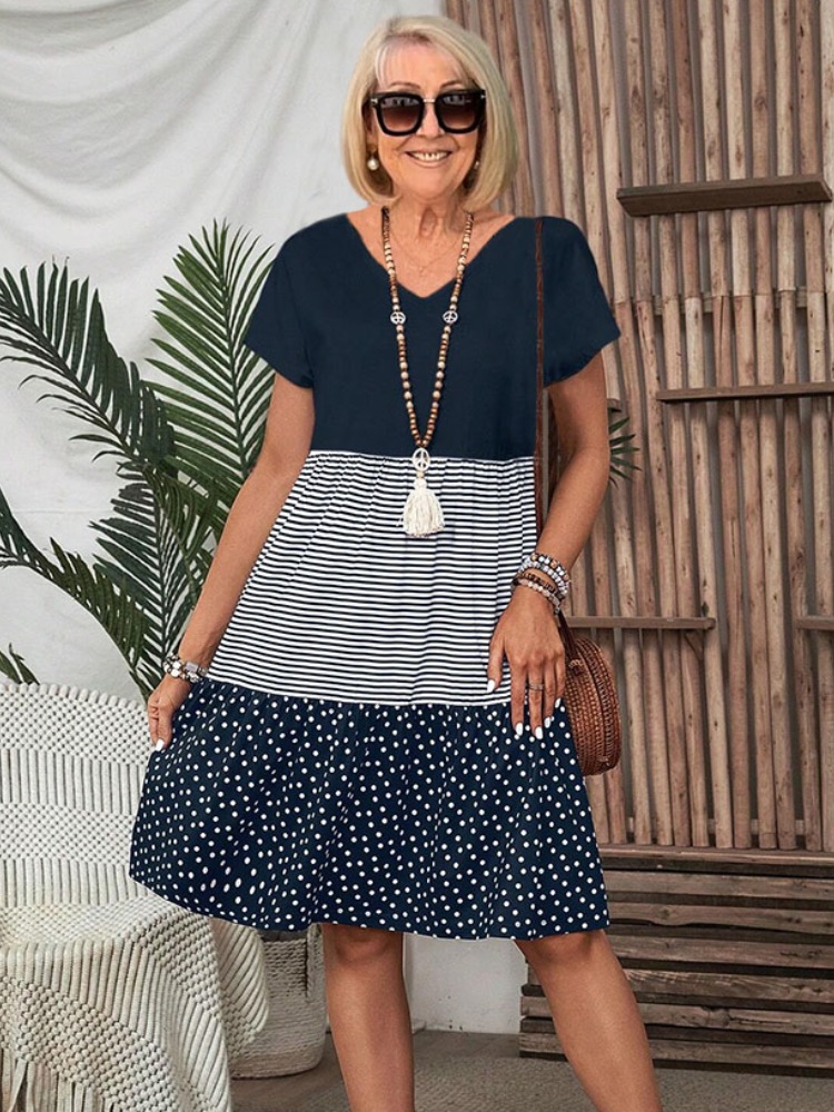 Colorblock Stripe Polka Dot Casual A-Line Dress