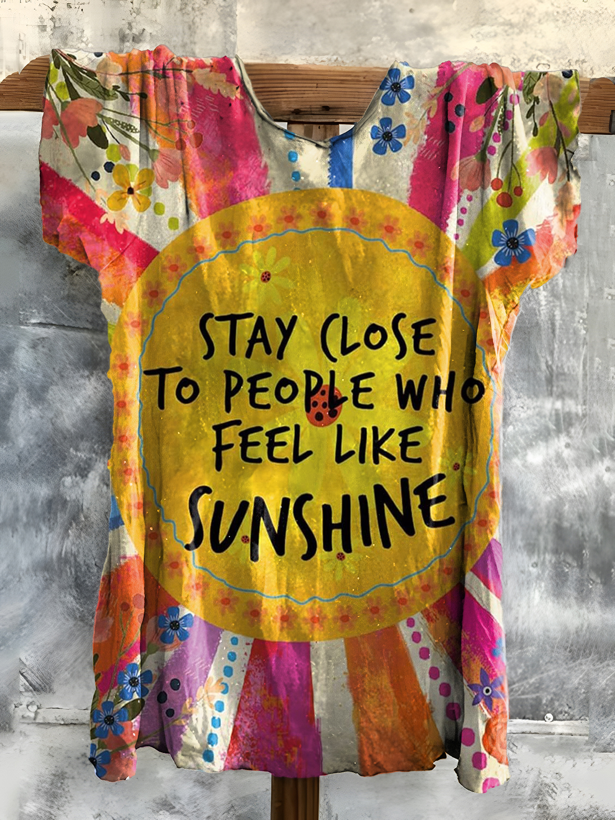 Stay Close To People Who Feel Like Sunshine Graphic Art Print Crew Neck T-Shirt