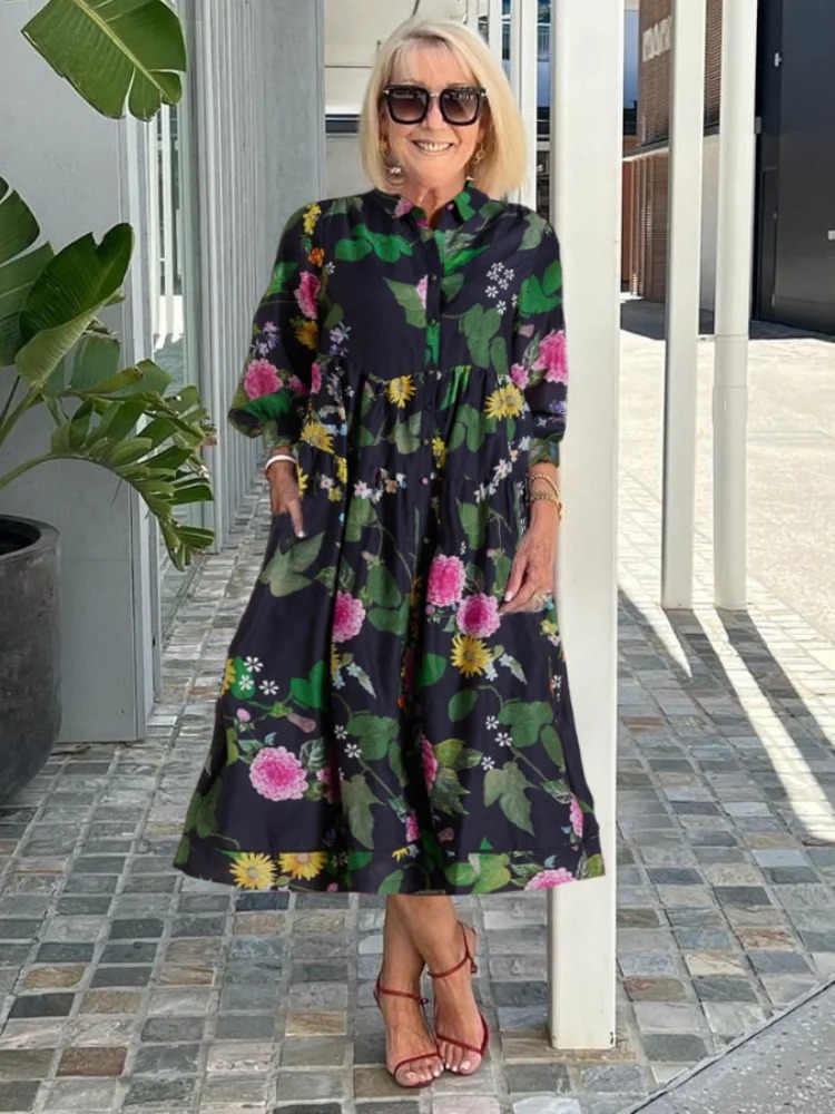 Blue Floral Print Long Tunic Dress