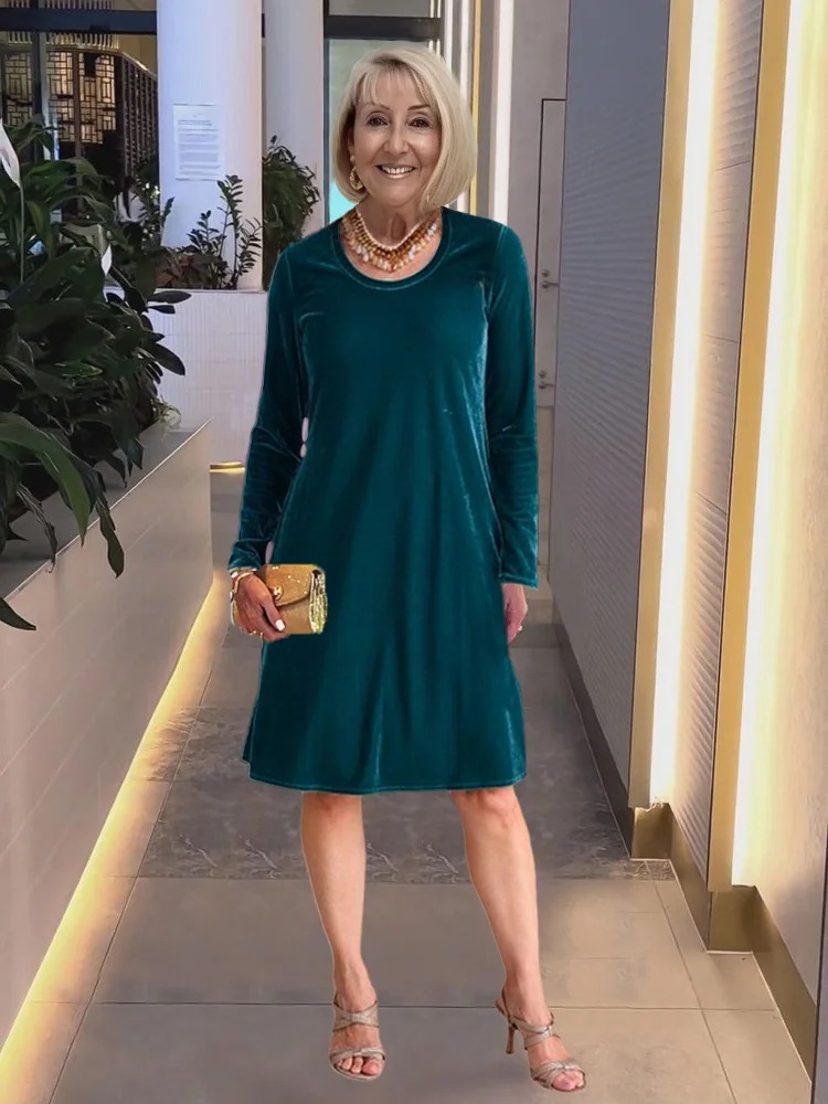 Crew Neck Velvet Long Sleeve Tunic Dress Evening Dress