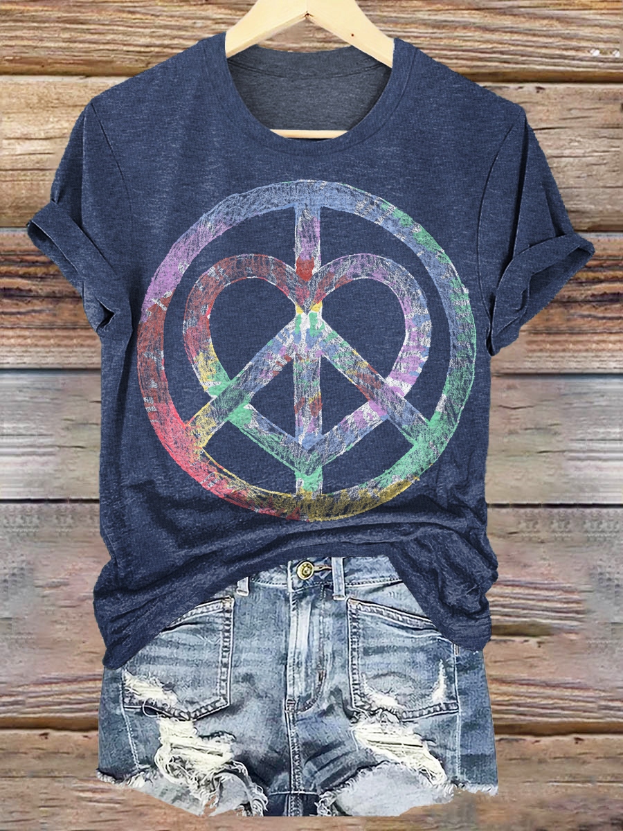 Tie Dye Peace Love Print Crew Neck T-shirt