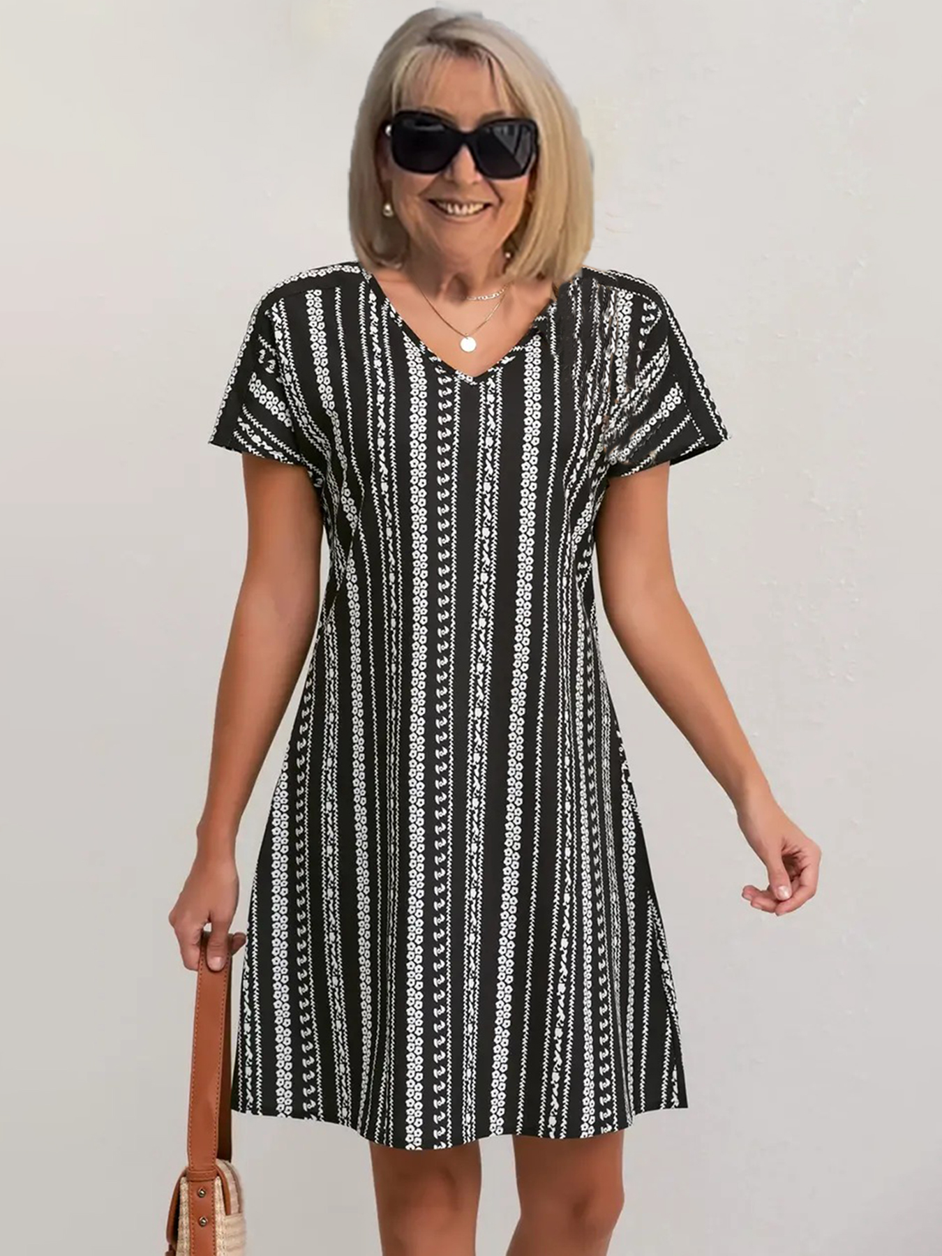 V-neck Lightweight Summer Dress - Bold Allover Prints for Vacation Style - Short Sleeve, Breathable, Perfect for Spring & Summer - Fashionable Womens Clothing