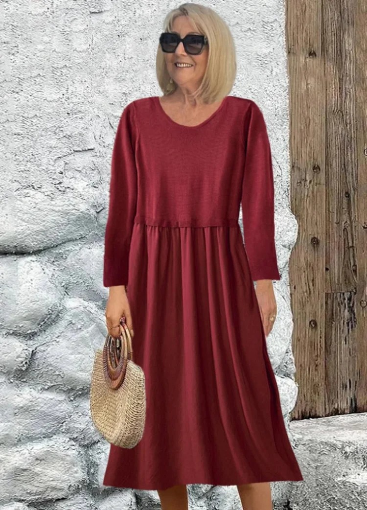 Round Neck Long Sleeve Medium and Long Tunic Dress
