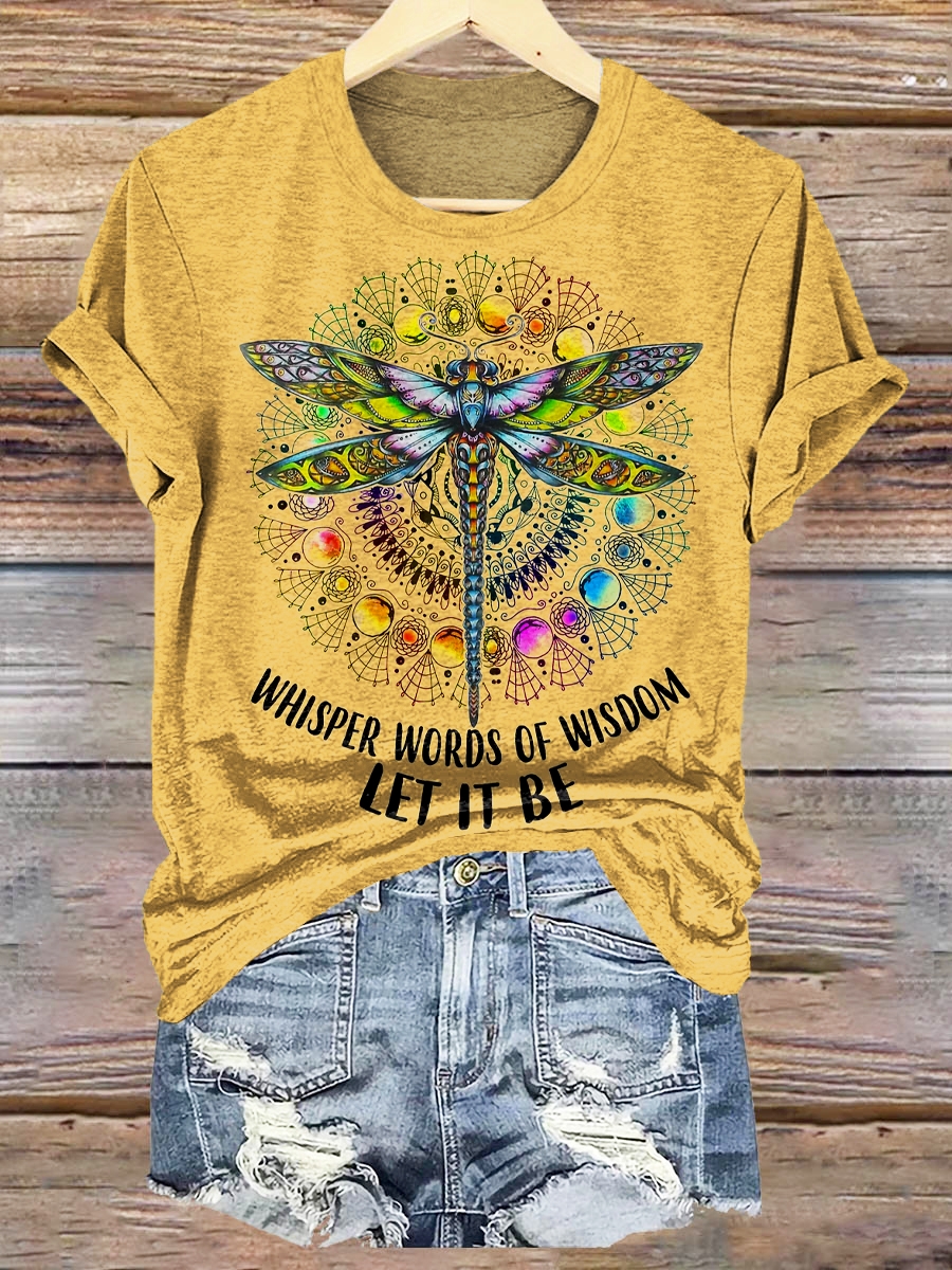 Whisper Words Of Wisdom Let It Be Hippie Print Crew Neck T-shirt
