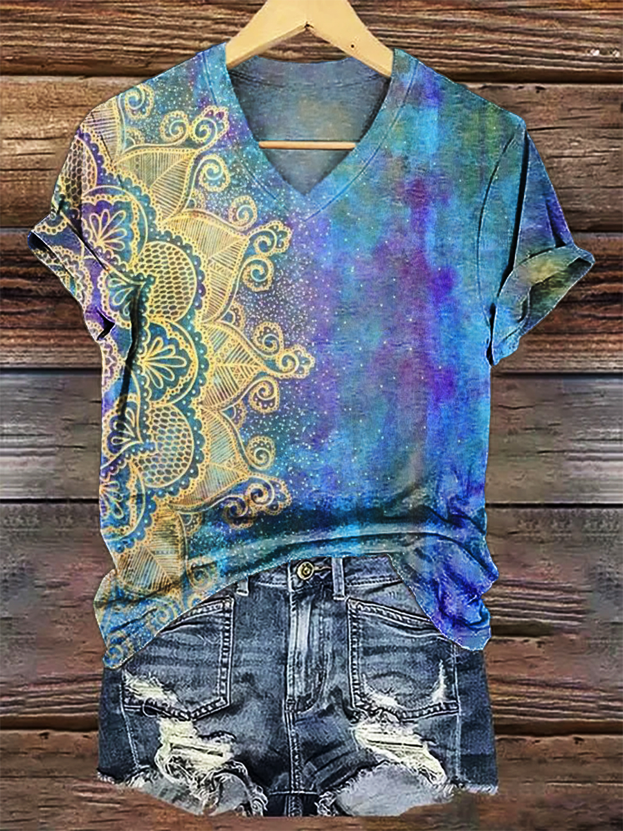 Women's Art Painting Hippie Print V-Neck T-Shirt