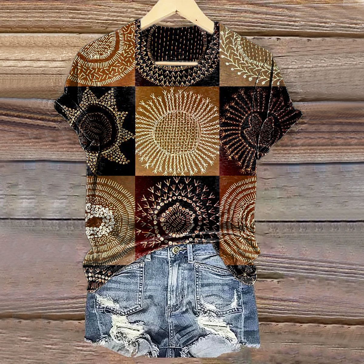 Women's Bohemian Floral Art Print V-neck Casual T-Shirt