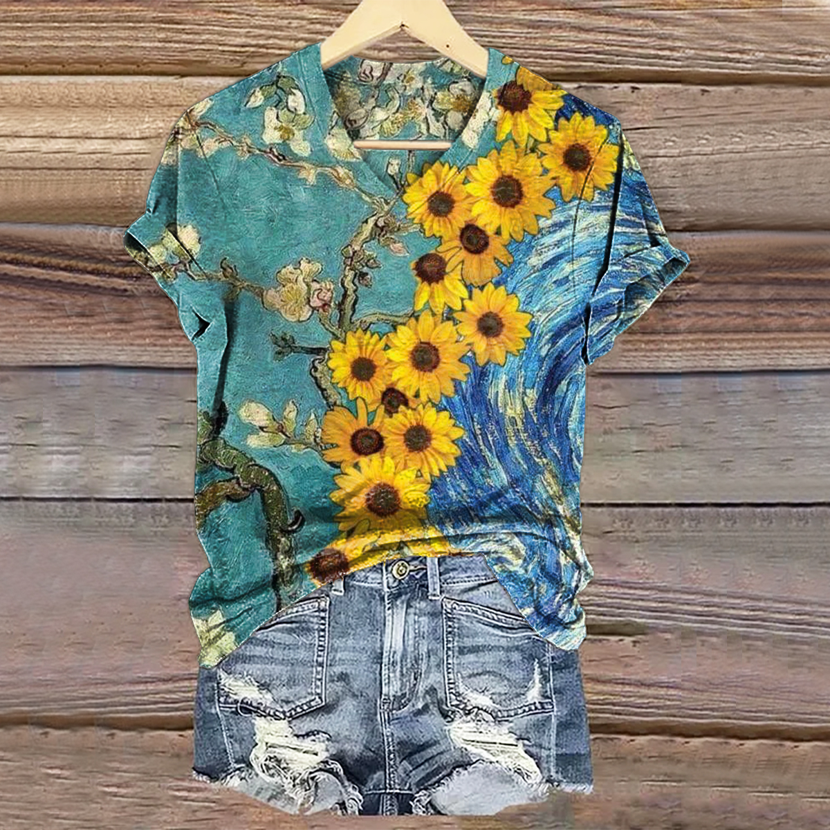 Women's Bohemian Floral Art Print V-neck Casual T-Shirt