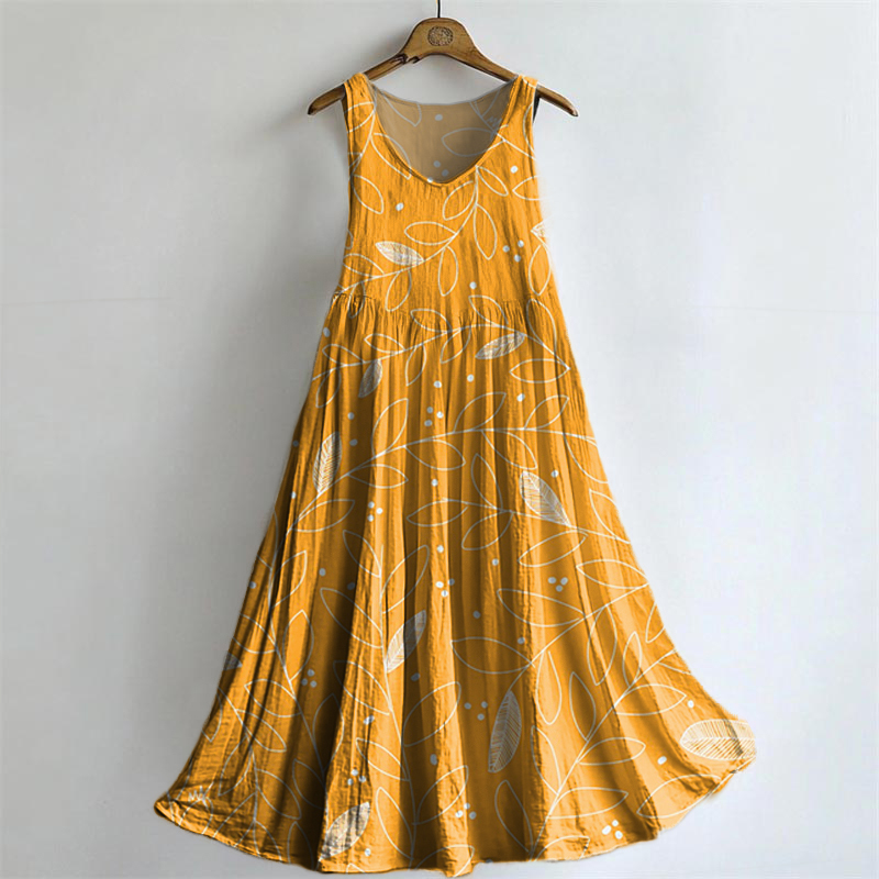 Women's Botanical Embellished Pattern Art Print Round Neck Sleeveless Cotton Pocket Dress