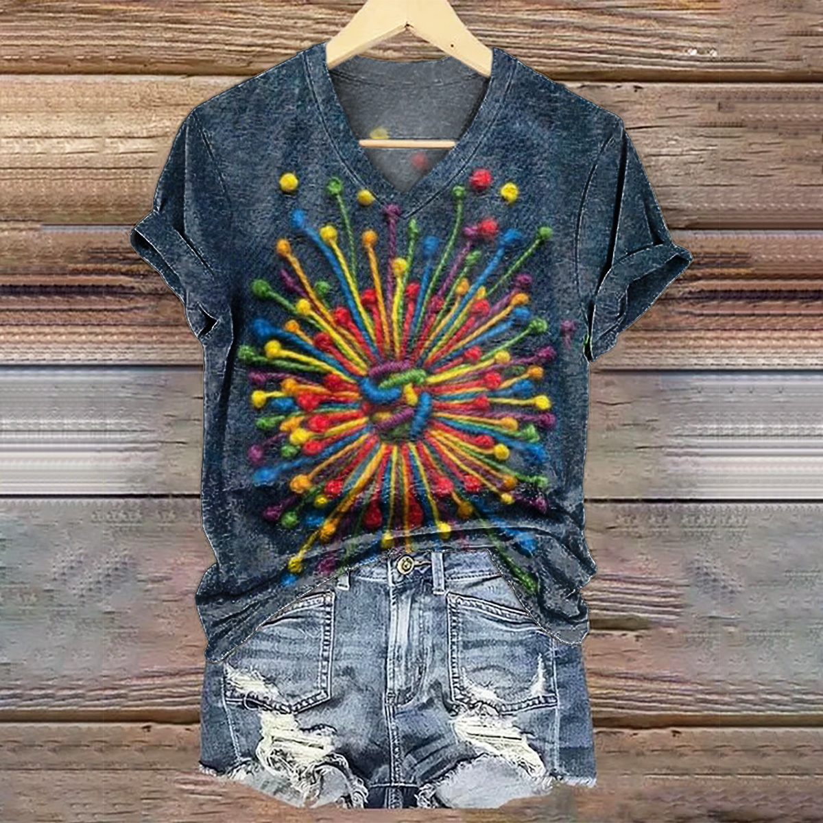 Women's Fireworks Art Print V-Neck Casual T-Shirt