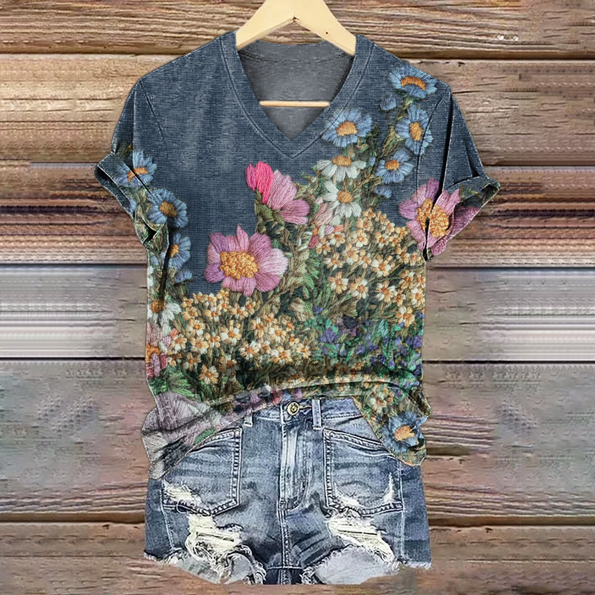 Women's Floral Art Print V-Neck Casual T-Shirt