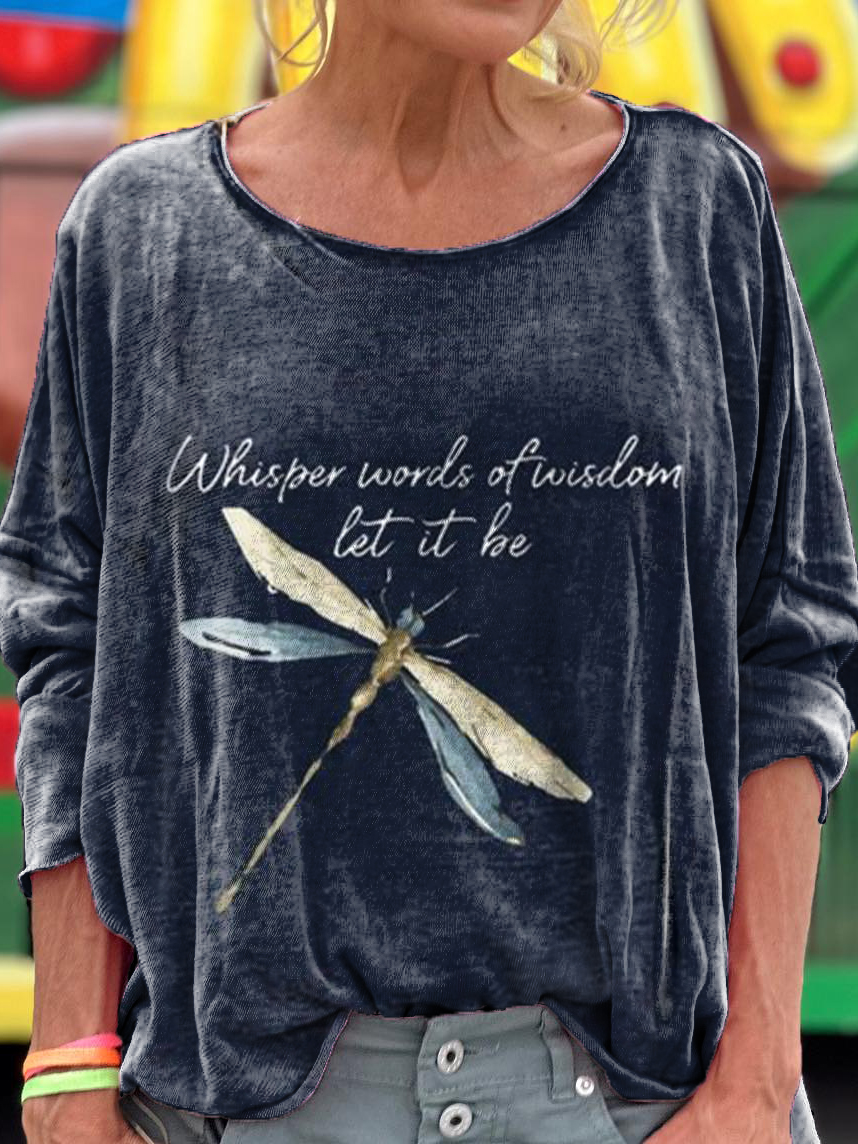 Women's Hippie Dragonfly Art Print Casual Long Sleeve T-shirt