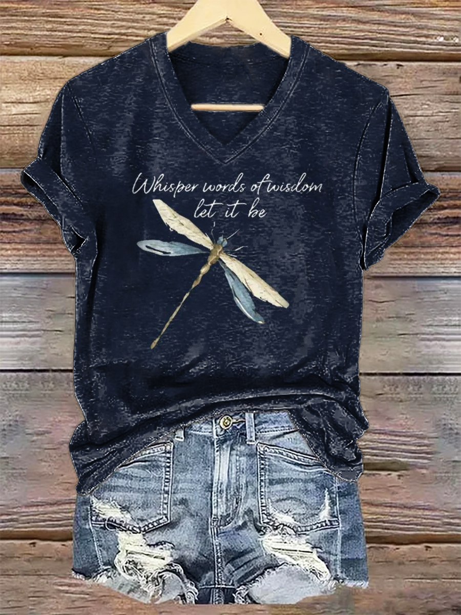 Women's Hippie Dragonfly Art Print V-neck Casual T-Shirt