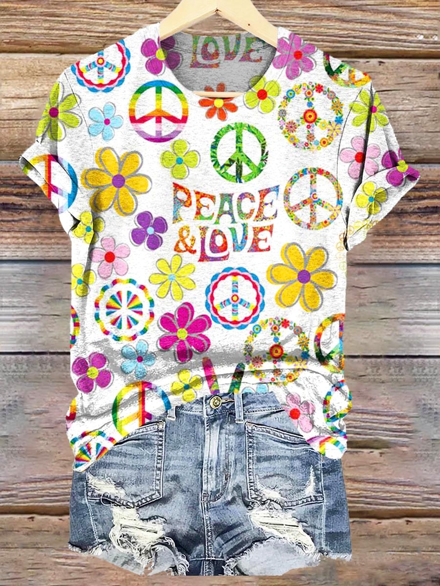 Women's Hippie Peace Love Sign Graphic Printed T-shirt