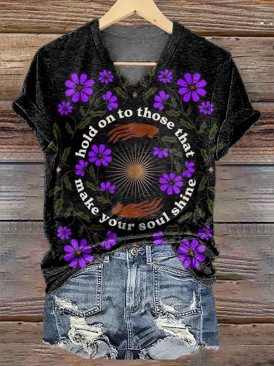 Women's Hold On To Those That Make Your Soul Shine V-neck T-shirt